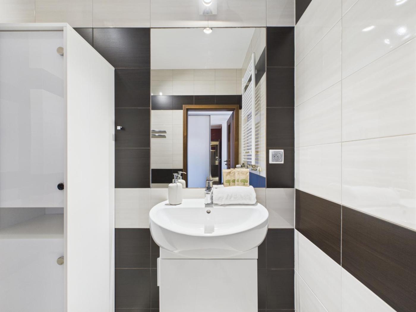 Apartament z 1 sypialnią i balkonem. This apartment comprises 1 living room, 1 separate bedroom and 1 bathroom with a bath and a hairdryer. Guests can make meals in the kitchen that is equipped with a stovetop, a refrigerator, a dishwasher and kitchenware. This apartment features a washing machine, a seating area, a flat-screen TV and a balcony. The unit offers 2 beds. Apartament - 4 osobowy. Powierzchnia pokoju ok.: 60 mkw.